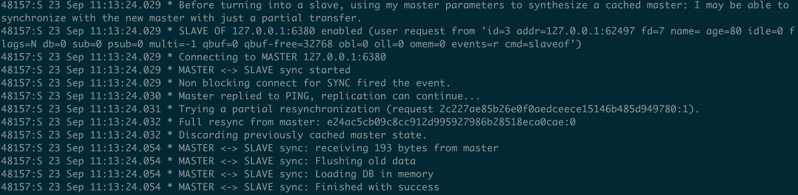 根据日志信息主从已经同步,可以在主节点通过set命令添加数据,在从节点通过get命令校验是否自动同步。